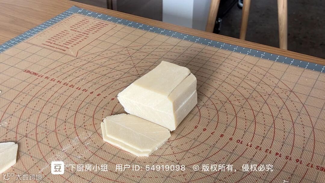 对角切拼好,再切成羽毛的样子