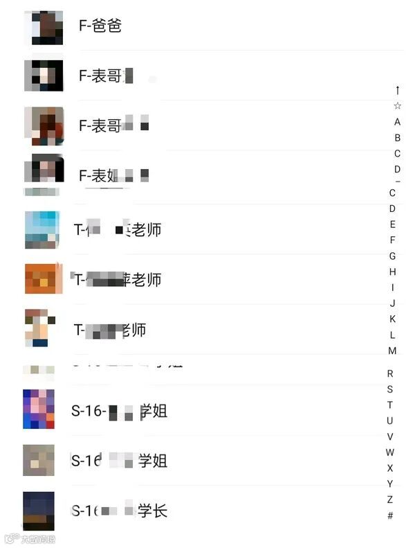 本J人的微信备注从初中起就是按照ABCD序号排列的,按照关系,亲疏,学校等分类。