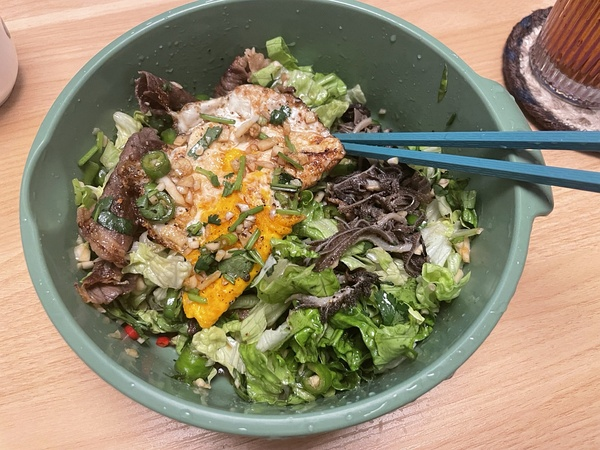 酸奶油之前用的是打发奶油+柠檬汁+洋葱碎+黑胡椒+海盐+橄榄油,后来发现直接用无糖酸奶替换奶油,味道也很好吃清爽。可惜最近太冷了,没法吃沙拉。