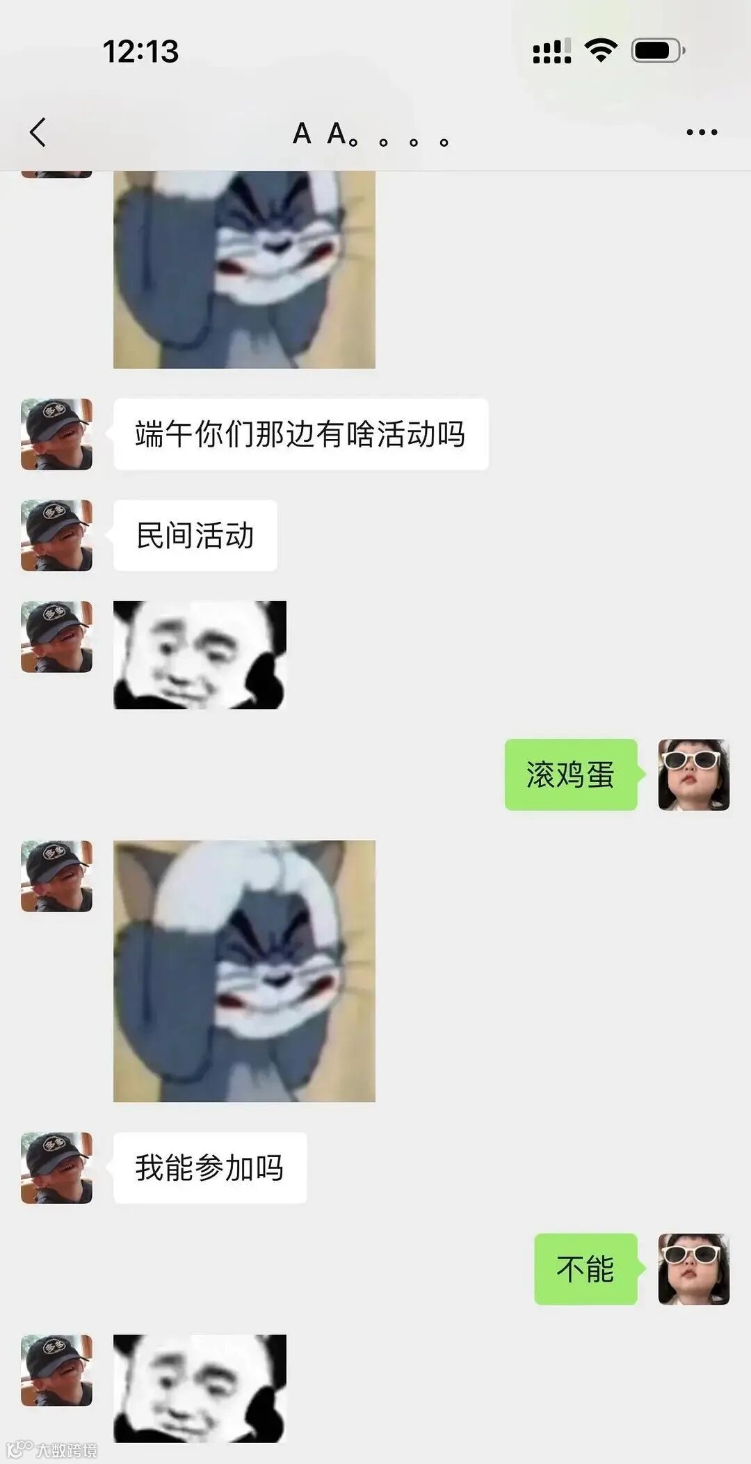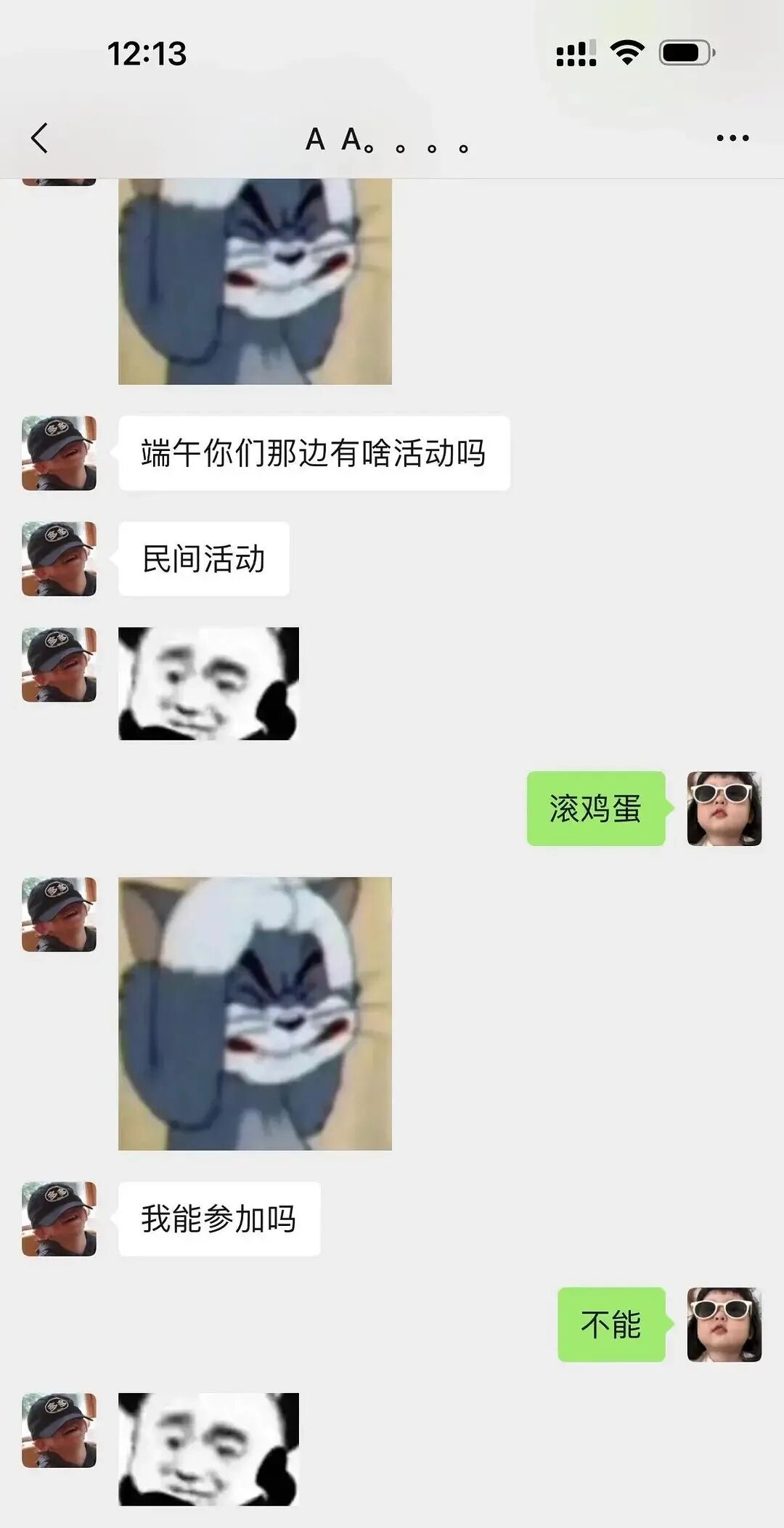 我最近在清理相册,看到了端午节时朋友发给我的消息,因为太好笑了,即使现在马上中秋节了,也想分享一下。