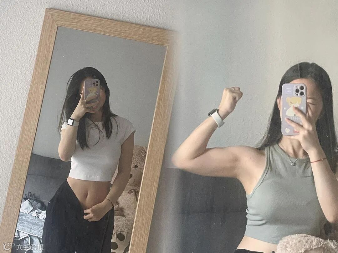 先说结果:胡吃海喝零食不断,体重一度飙升到了57kg,坚持控制饮食+健身,最新体重是49.5kg。
