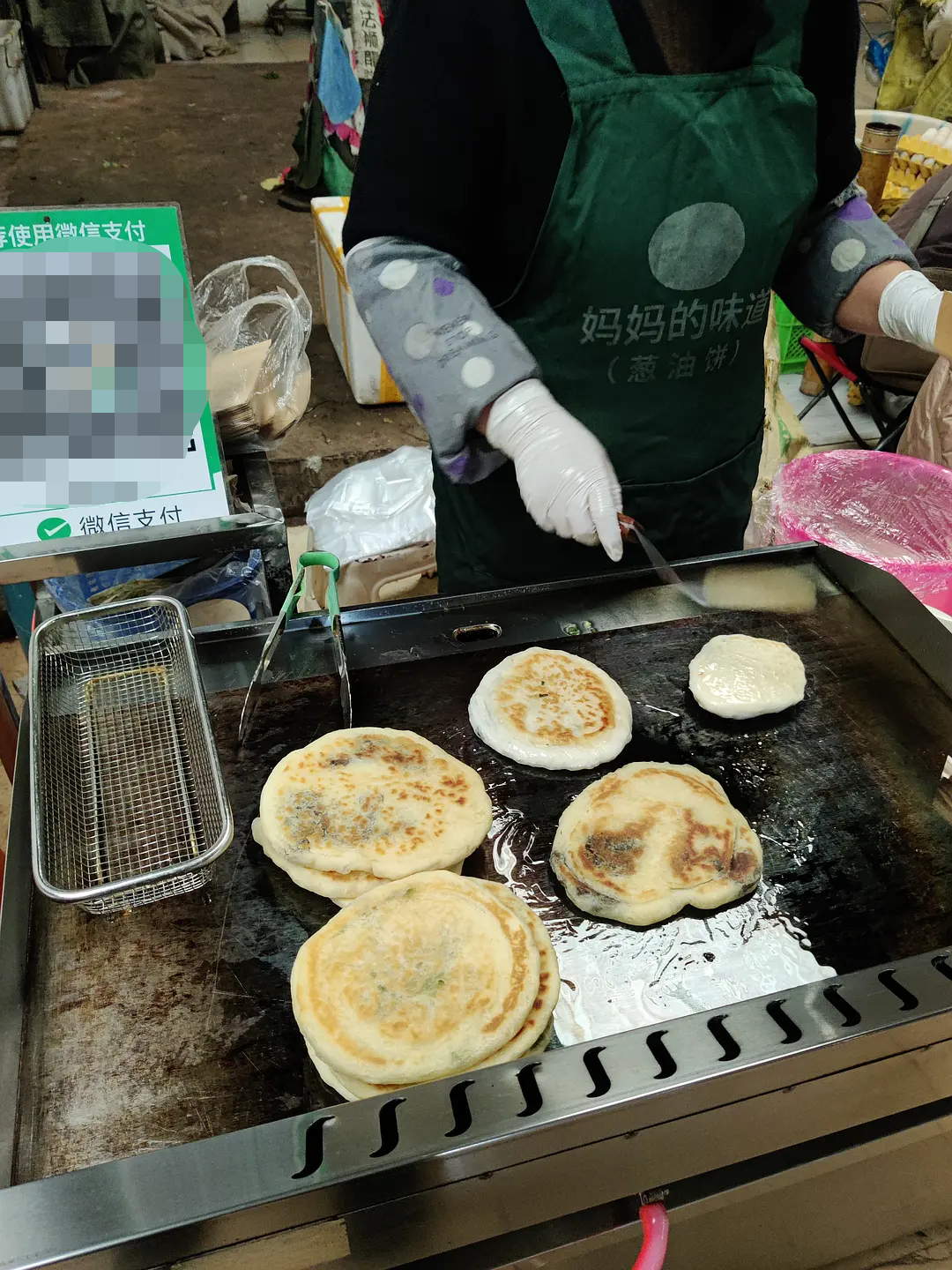 这一家的米浆粑粑,有五种口味,3块钱一个。香菇,葱花,豆沙,酸菜,火腿花生。我一连吃了三天的豆沙口味。