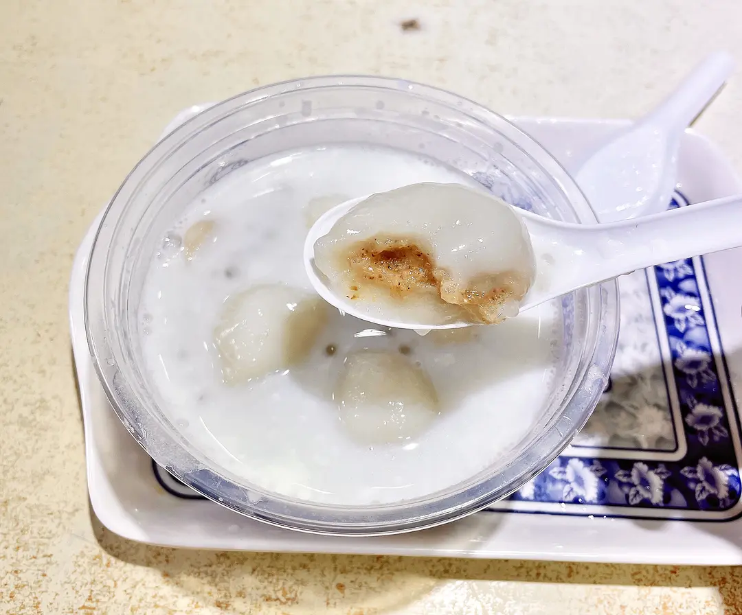 双皮奶汤圆 这家的汤圆是此行top 还有花生麻蓉馅 也很好吃 馅料都是手工做的 颗粒感十足 汤圆皮糯而不散 又糯又韧很好嚼 不会很甜 双皮奶细腻润滑 奶味香浓