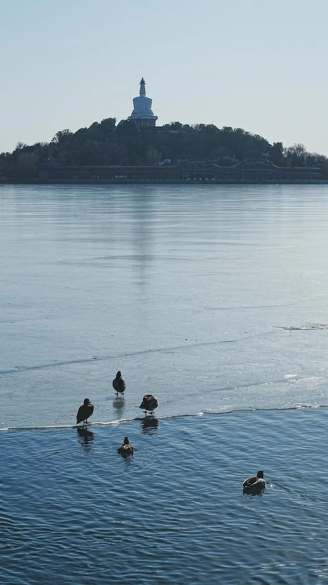 融冰|北海公园 气温开始逐渐回升,本来也没怎么冻上的北海公园北岸水面,好像鸭鸭们的活动范围更大了,循着大爷们镜头所指的方向看去,原来是超凶的秋沙鸭😶。 来自豆瓣小组“我们喜欢逛公园”