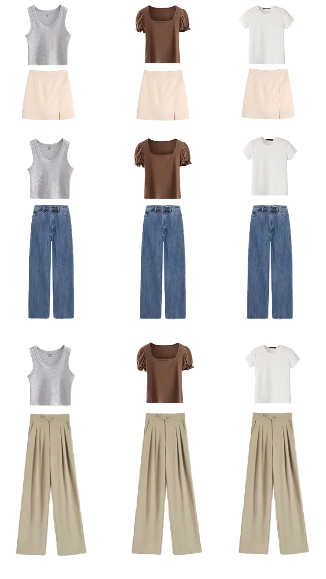 确实,我一个夏天4件不同颜色的t恤还有2条牛仔裤一条阔腿裤换着搭配穿。一个夏天就这样过去了。