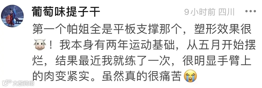 第一个帕姐全是平板支撑那个,塑形效果很🐮!我本身有两年运动基础,从五月开始摆烂,结果最近我就练了一次,很明显手臂上的肉变紧实。虽然真的很痛苦😭