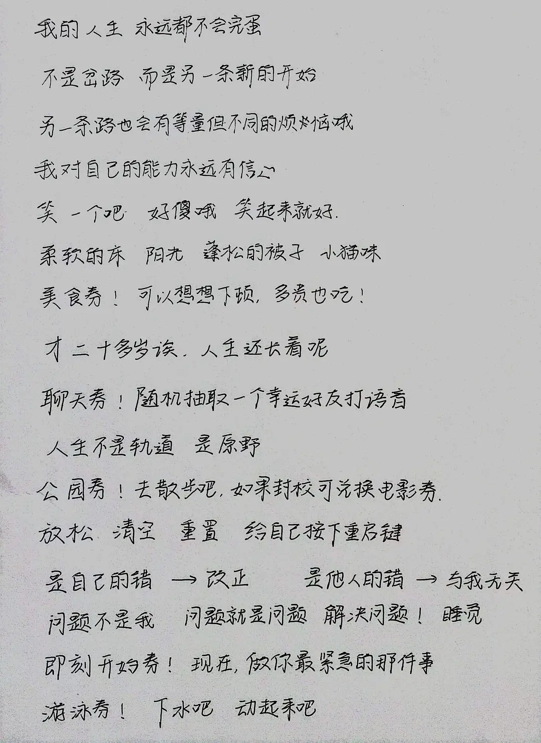我之前也想着这么做来着!一直没有开始,决定了!找个天气好心情好的日子就开干!谢谢友友,被激励到了,话说友友有没有看过《公主嫁到》,港剧,里面男主就写过类似的纸条