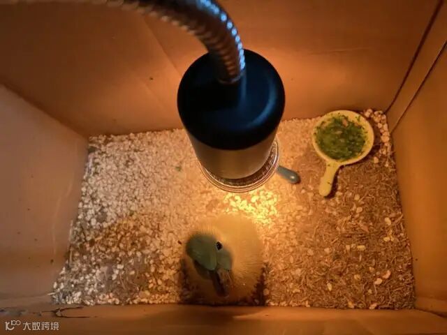 我刚刚给小鸭子买了个笼子和玉米芯垫料还有发酵床,昨天给它垫了暖宝宝~小鸭子睡得可香啦(不会熟的哈哈哈哈哈)