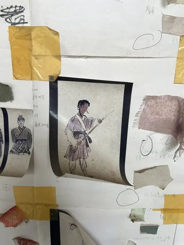 化妆间的墙上还贴着当年的定妆照,全部都是手绘的……旁边贴着服装布料
