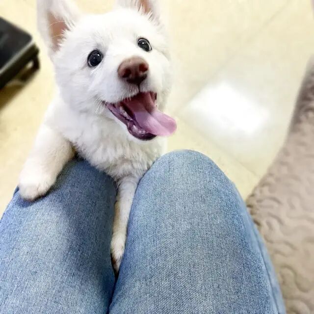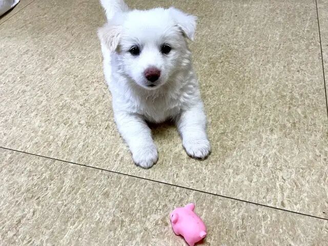 稍微教一下就会定点撒尿拉粑粑了,会坐会握手,很聪明哈哈哈哈~