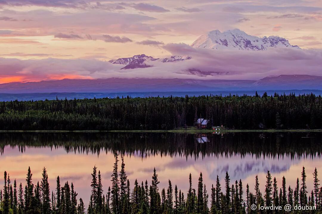 夏天在阿拉斯加,房车大概是最方便的旅行方式。比如这天下午开到Willow Lake的时候,天公不作美。本来在湖另一边一字排开的四座火山,全都藏在了云后。我们不着急,停车,散步,做饭,吃饭,再聊会天,望着天边的云渐渐的变薄。等到将近零点的时候,夕照的阳光突然穿透午夜微凉的空气,瞬间点燃了山边的云霞,惊艳非常。随着光和云的变幻,每一刻的色彩都不一样,每个方向都有迷人的细节,除了不停按快门,完全顾不上其他的了。
