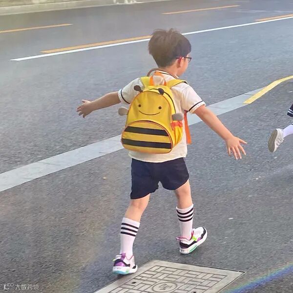 放学了,幼儿园门口跑出两个穿着小小制服的小盆友,大声笑着嚷着: