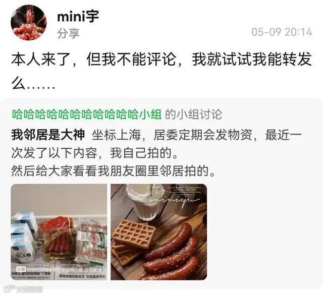 因为这张图后来在朋友圈里转发非常多,我也怀疑是不是我最初看到的那个邻居拍的(不敢问,都是团菜加的vx,我凑上去问邻居你多发点作品照可以吗?不合适)。