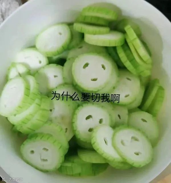 我有一天买的丝瓜太长冰箱放不下,一掰开发现两个笑脸,和你这个好像啊
