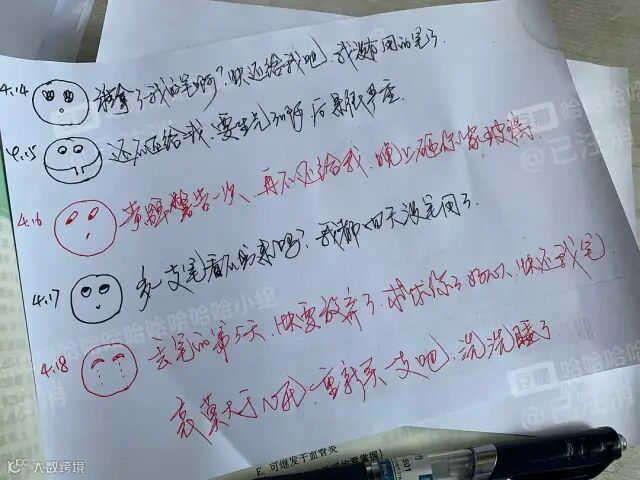 应该不会 你看他写的字 都是黑色红色 证明他确实在等“好心人”把笔给他送回去