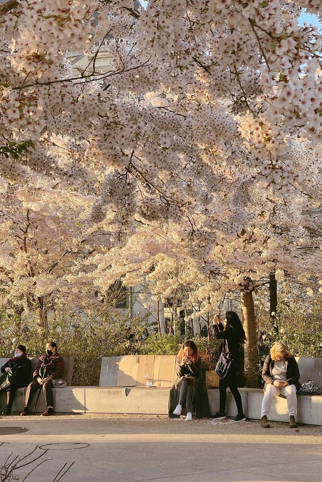 传说中的巴黎春天🌸 黄昏的时候去车站坐车,温暖的夕阳里樱花像飘浮的粉色云朵,春天真好呀 来自豆瓣小组“无用美学”