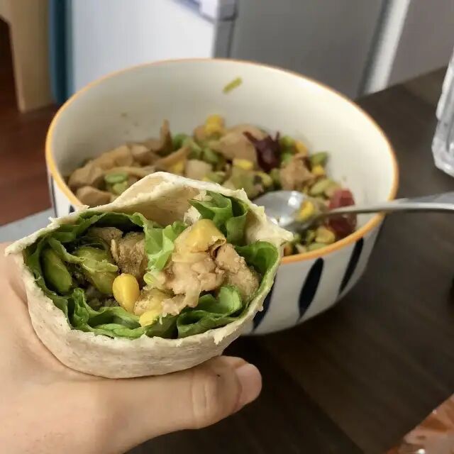 昨天剩了一些杂粮饭和刚烤好的羊肉🥦炒了当午饭