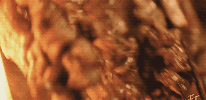 而豆腐内部犹如时空逆转,固体逐渐融化还原为豆浆,肆意翻滚,呼之欲出。