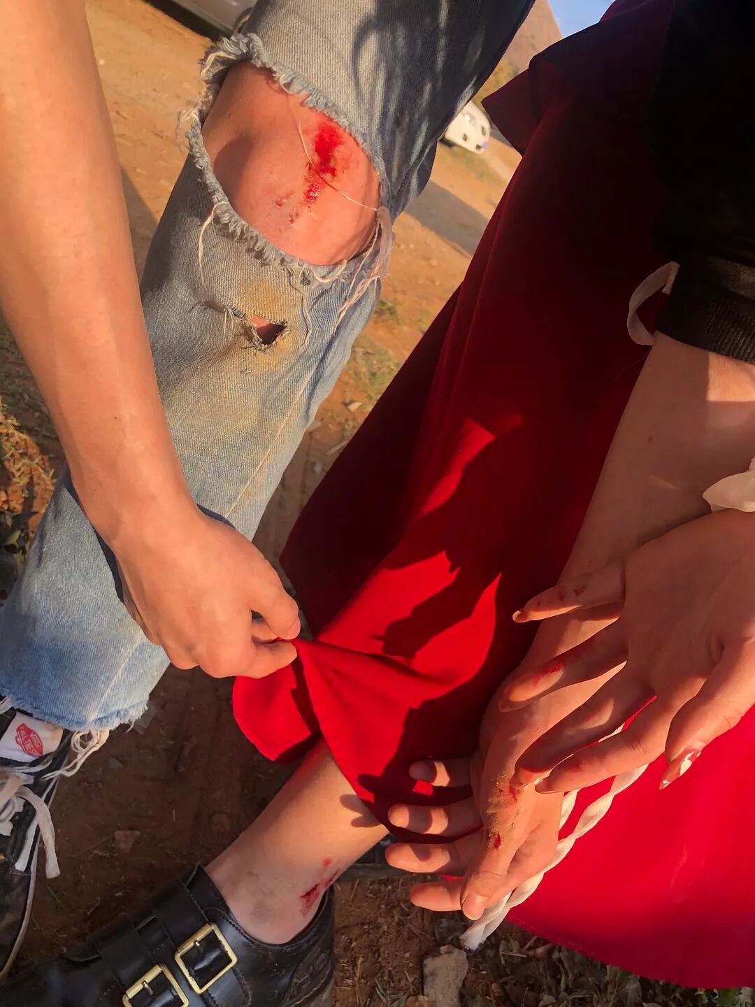 我起来以后,Crush还被车压着没起来,我整个人也跟着裂开了,我怕他身上有其他问题不敢扶他,掏出手机甚至想打120救命。Crush被我朋友扶起来的时候,表情复杂的看着我,其中夹杂着关心、懊恼、自责以及蒙圈,一直在看我身上还有没有其他地方被摔到。