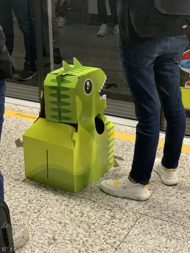 有一个空空的小恐龙,以为是在运输小朋友的手工作业