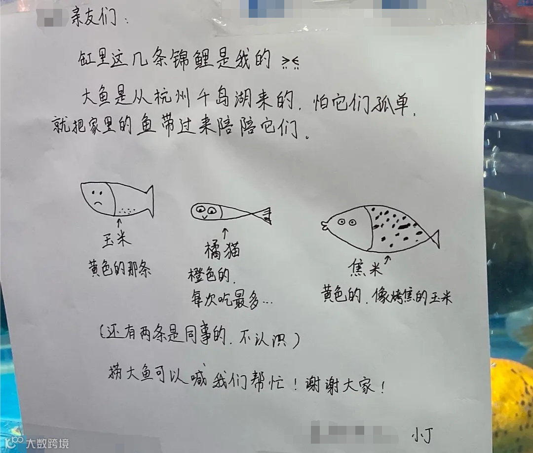 鱼缸上贴了张纸,说锦鲤是不卖的,是怕大鱼太孤单,来陪他们的🤣