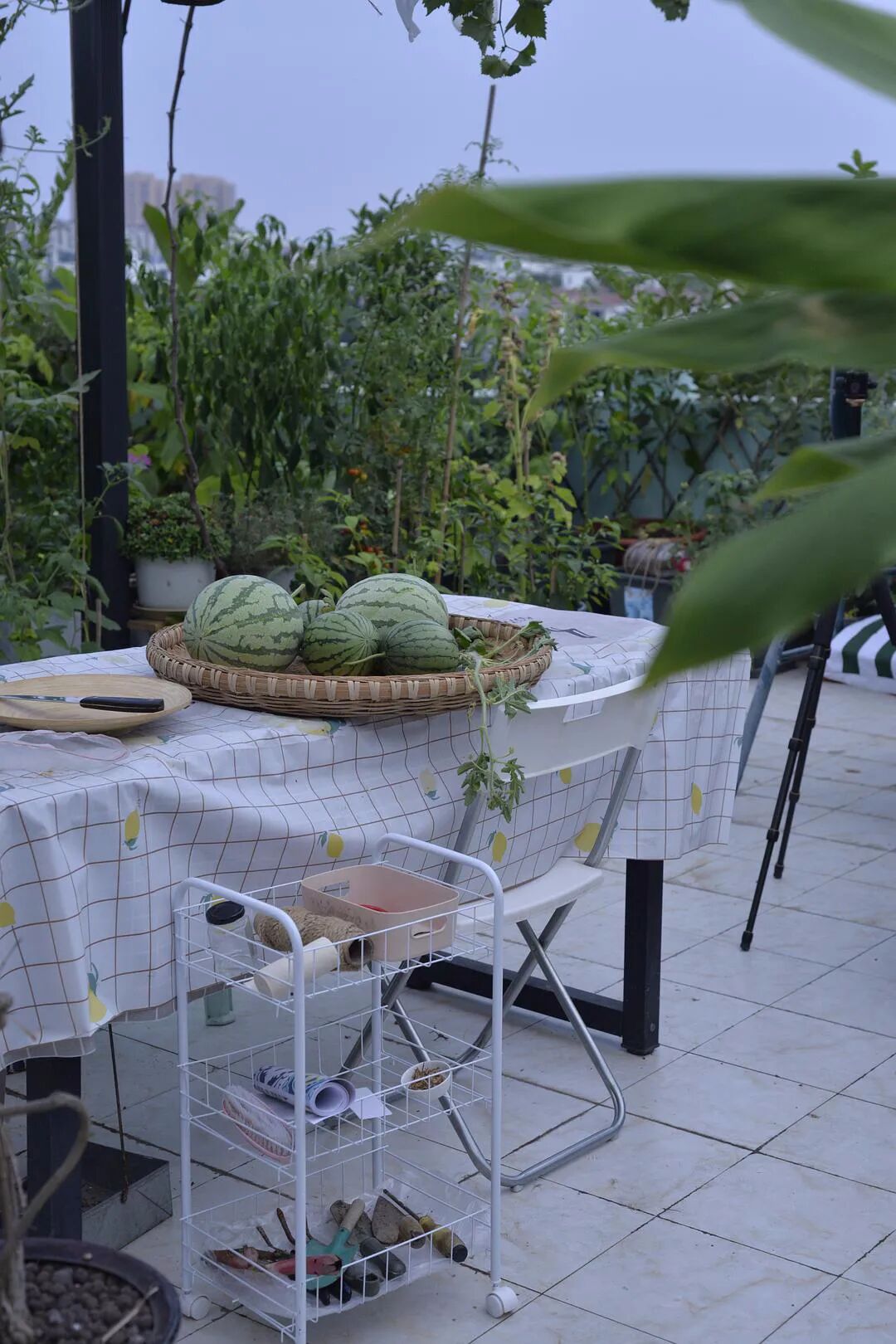 露台上种的西瓜熟了 今年收获了九个瓜,都种在大大小小的花盆里 来自豆瓣小组“迷恋植物的人”