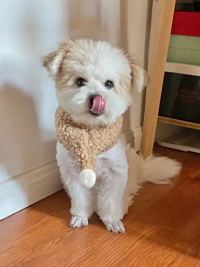 捡的小狗哦,感觉可能是比熊和小土狗,毛是比熊的不容易掉的,花色感觉是和小土狗混的,哈哈猜的