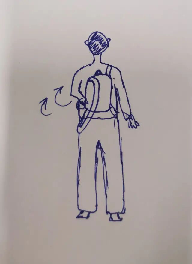 这时候他开始第三次捞肩带,这次一下就勾住了,顺势背好了背包🎒想必他自己也松口气,心里可能会想“总算是把你给勾住了!“