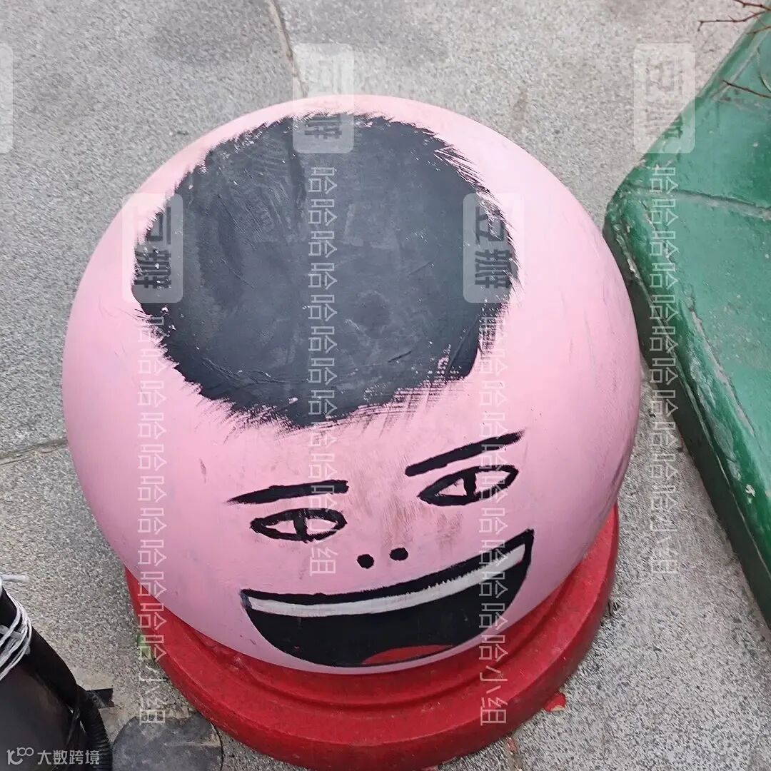 今天去校门对面商场买奶茶,看到了一个“开心的”石墩