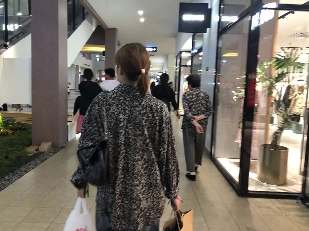 在商场朋友随手拍的一张我的背影,不点开图仔细看,我跟奶奶穿的就是姐妹装。