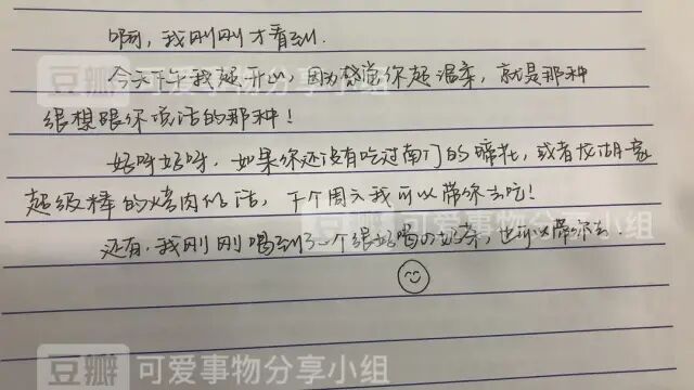 一下午都很开心,妹妹梨涡超好看,有一搭没一搭的聊天!很想加妹妹联系方式,但有点不好意思,然后她被男朋友接去吃饭了,我就给她留了一张字条!晚上她加了我wechat,给我回复了纸条!相约下周吃饭!