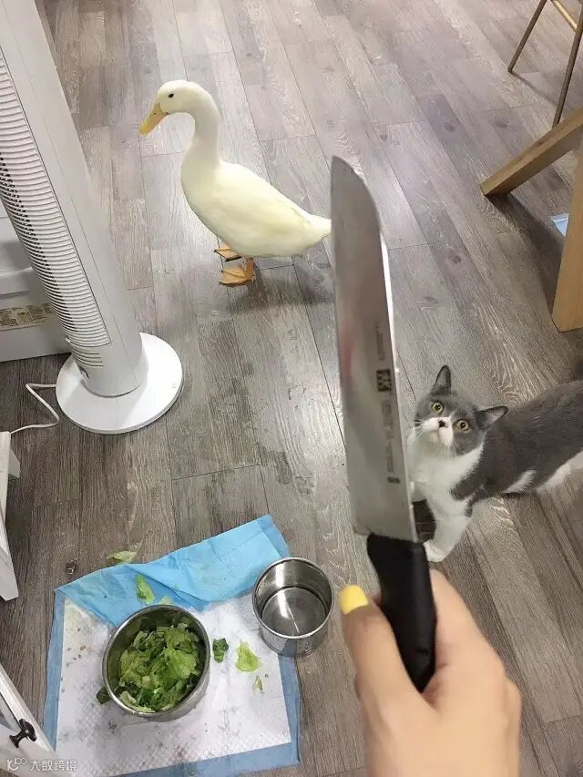 过了几秒我终于反应过来,于是我赶紧拿起大刀去赶鸭…