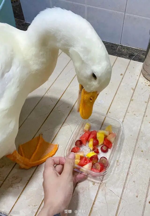 本来是只公鸭不知道为啥偏爱吃酸酸甜甜的水果。