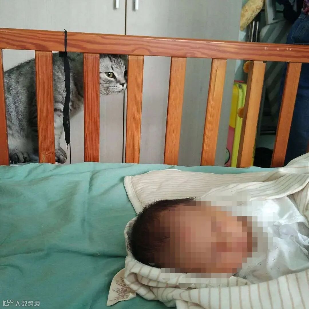 这是刚生了我家宝宝之后带回来的第一天,放在小床上,我家的喵主子立刻跑来看,我甚至能感觉到他的疑问:这是个什么玩意