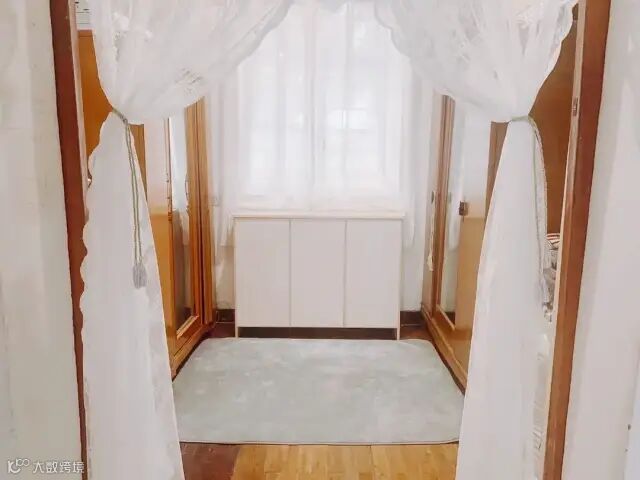 房子是四室一厅一厨一卫,通向院子的房间作为卧室不太方便,所以我把门拆了改成了客厅,另外一个朝北的房间太小,布跟纱窗都拆掉的情况下还是很昏暗,所以我给改成了衣帽间!