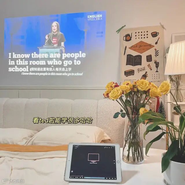 刚来的时候弄的布局,现在加了投影仪,把墙上的壁纸都弄掉了。
