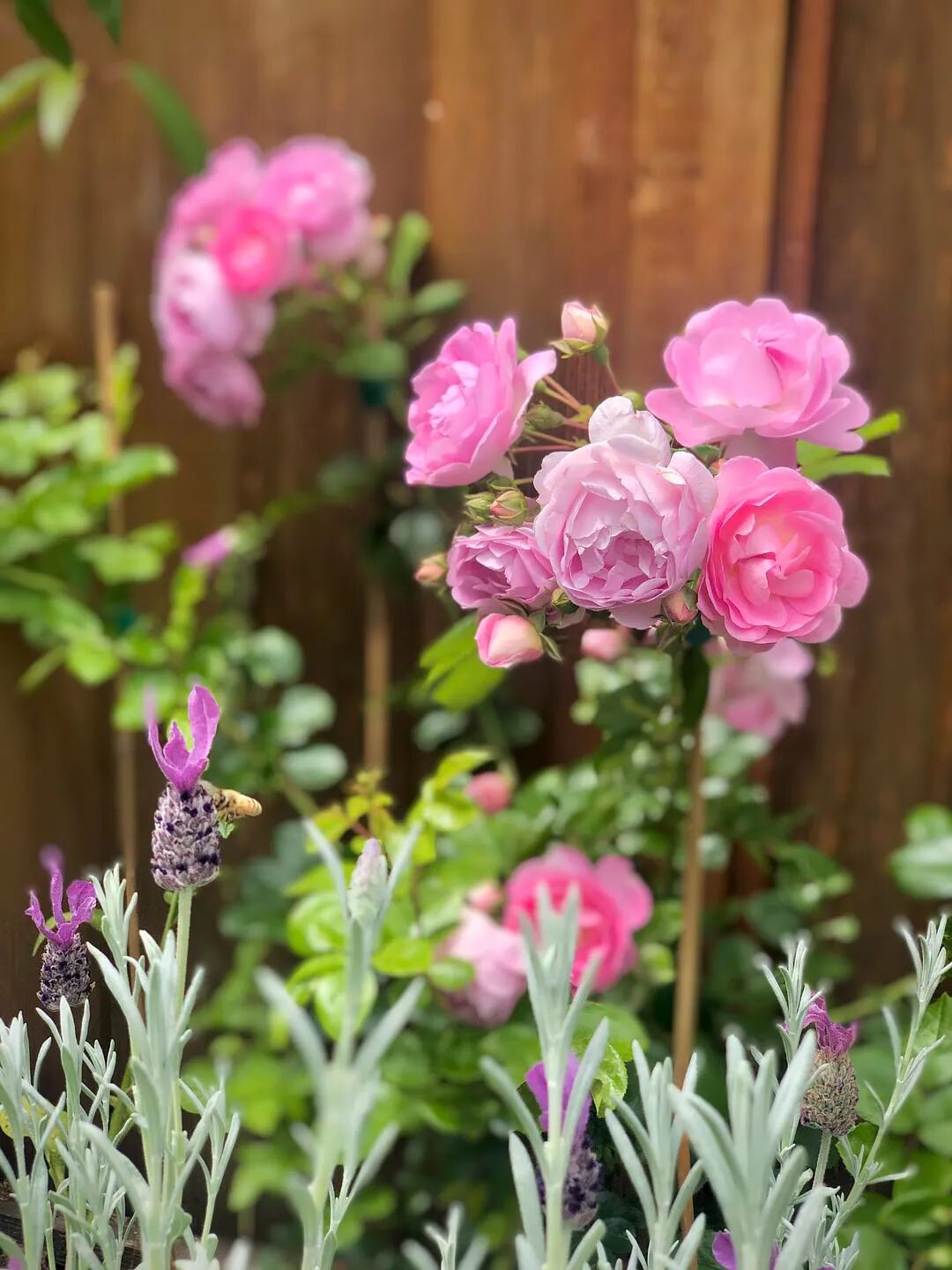 今日份的开心: 同个街区的邻居奶奶来敲门,问我可不可以周五过来剪些我家的花。原来她女儿这周六要结婚,手捧花和胸花都只想要花园里自种的粉色月季。不幸的是前两天的大风把她家的都吹倒了散了,一下子没了backup,又不想让女儿失望,溜达时总看见我家很多花,就想来问我试试。我当然欣然答应呀。