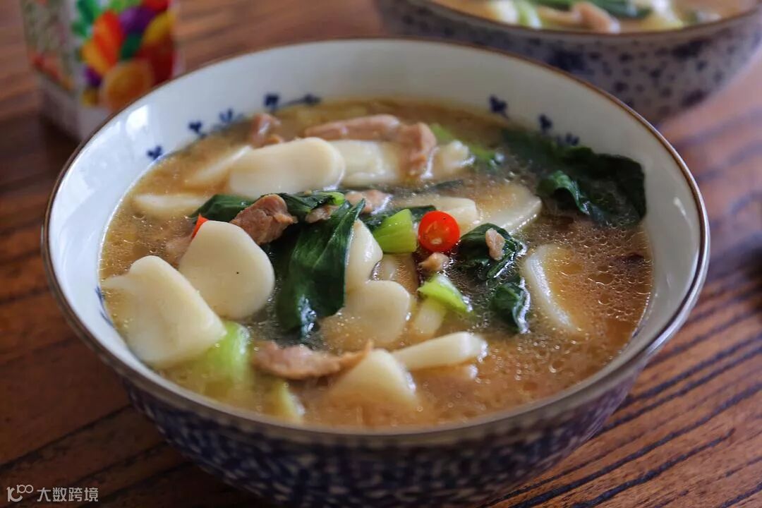 做法:年糕用水浸泡,猪里脊用a腌制一会儿。热油炒到金黄,下青菜梆加一点点盐和糖一起炒,炒软一些了加水、菜叶、香菇、小米椒,煮开后下年糕,加酱油调味,煮大约3-4分钟,出锅前加一点白胡椒。