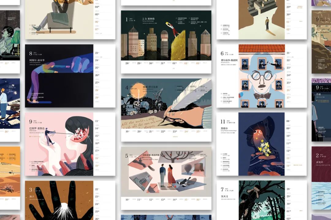 读书周历内共有53张原创插画,每周一幅致敬当周作家或其作品经典场景。背面则印有每周精选作家书摘,经典语段可以随时品读。