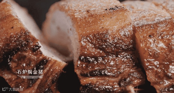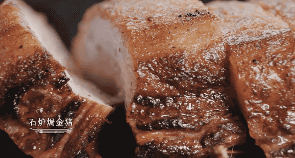 肥瘦黄金搭配,肉汁充分保留,猪皮变成迷人的焦糖色,入口爆香酥脆。