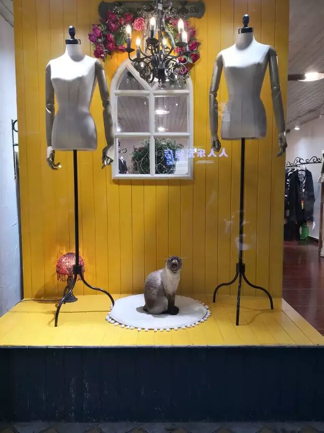 今天下班准备去吃晚饭,经过一家服装店,觉得有点莫名其妙,买衣服的橱窗为什么放一只工具猫,还要站C位,觉得有点好玩,就拿起手机拍拍拍,然后……他显灵了……