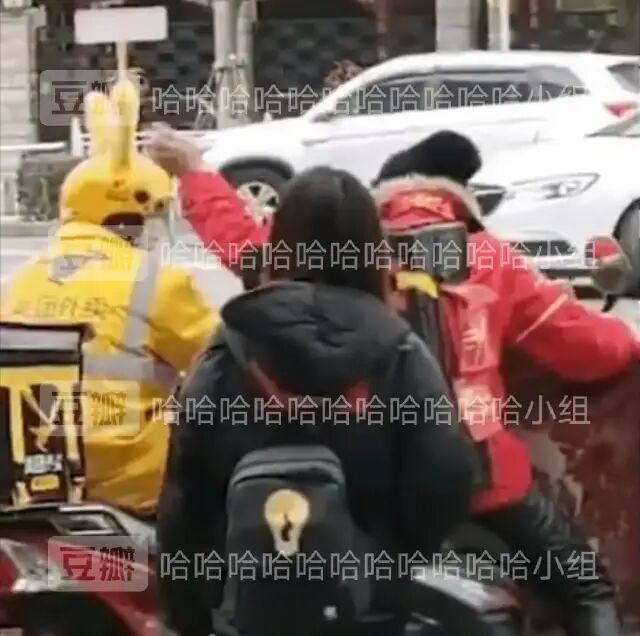 事情是这样的,那天我们一起走在路上,发现路边有个美团外卖小哥,戴着袋鼠头盔正在打电话。
