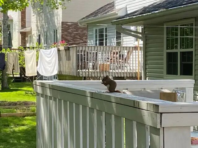 这个时节,坐在楼梯口,静下来,慢慢会看到很多东西。枫树的种子纷纷飘摇旋转而下,仿佛有生命一般。鸟儿来了又走了,松鼠来偷鸟食儿。啄木鸟在树干上敲敲打打。