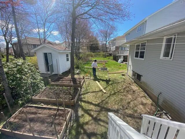 在院子里工作的熊爸,他左后方的小工具房也是自己建的。熊爸作为一只程序猿,做工程只是爱好。每年夏天就会给自己找点事做。