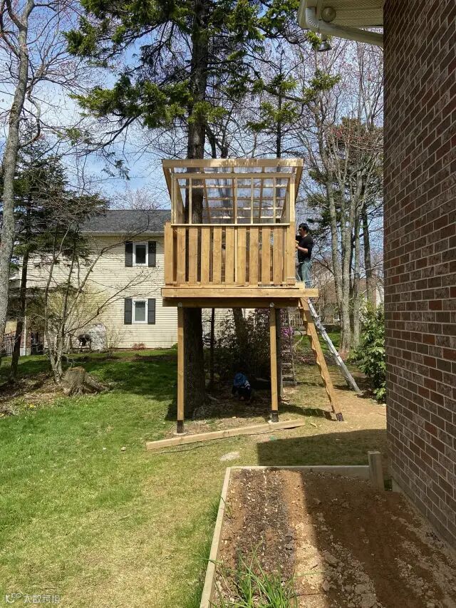 熊爸把原来的梯子打掉重做了一个,坡度更大更安全了一些。