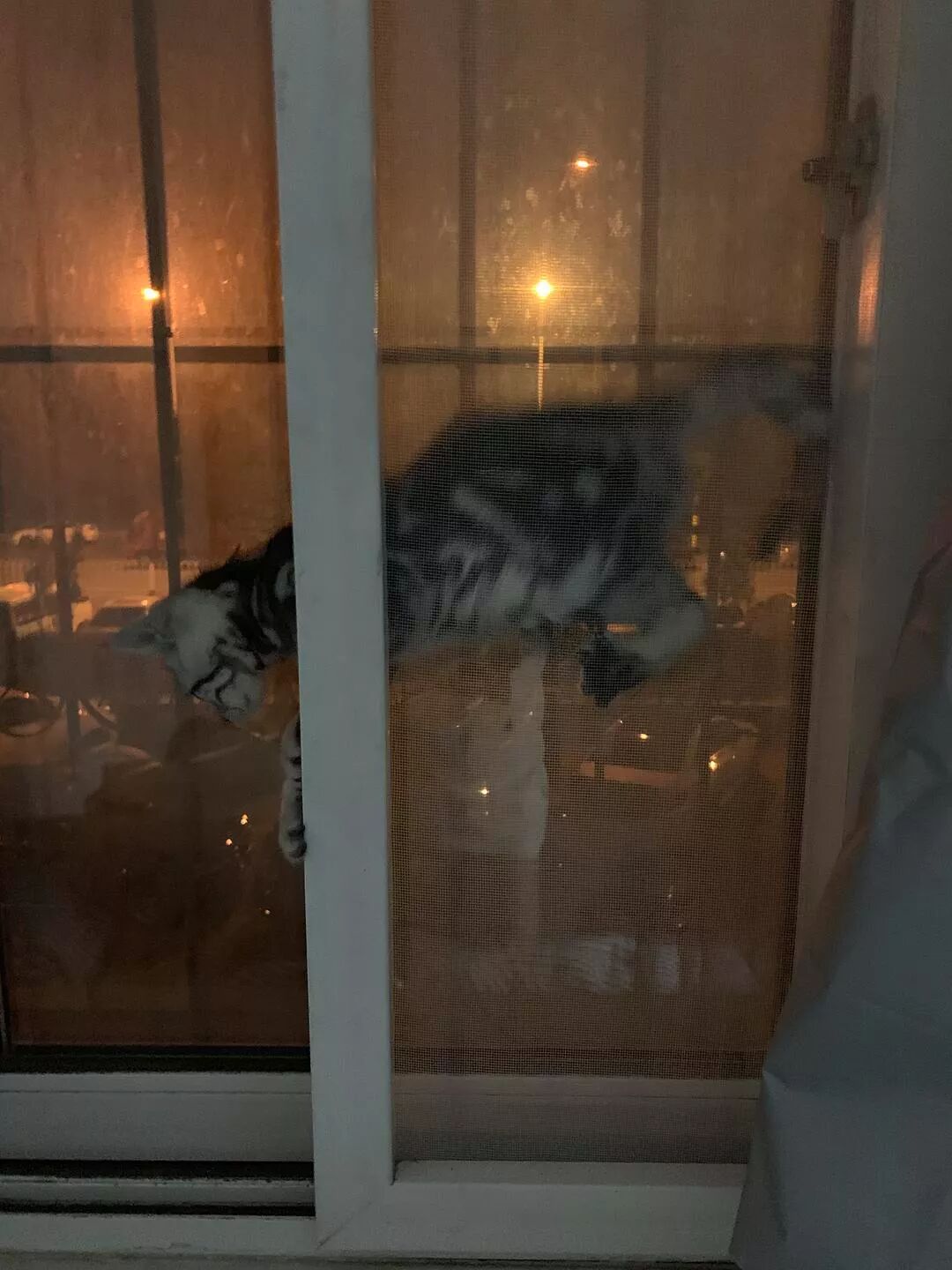 纱窗横在窗户中间,我隔着窗帘听到动静,拉开一看…… 它可能提前在给《蜘蛛侠》宣传造势。 最后一张……安静下来一脸无辜,还是很可爱的。 来自豆瓣话题#你的宠物都干过些什么蠢萌事情?#