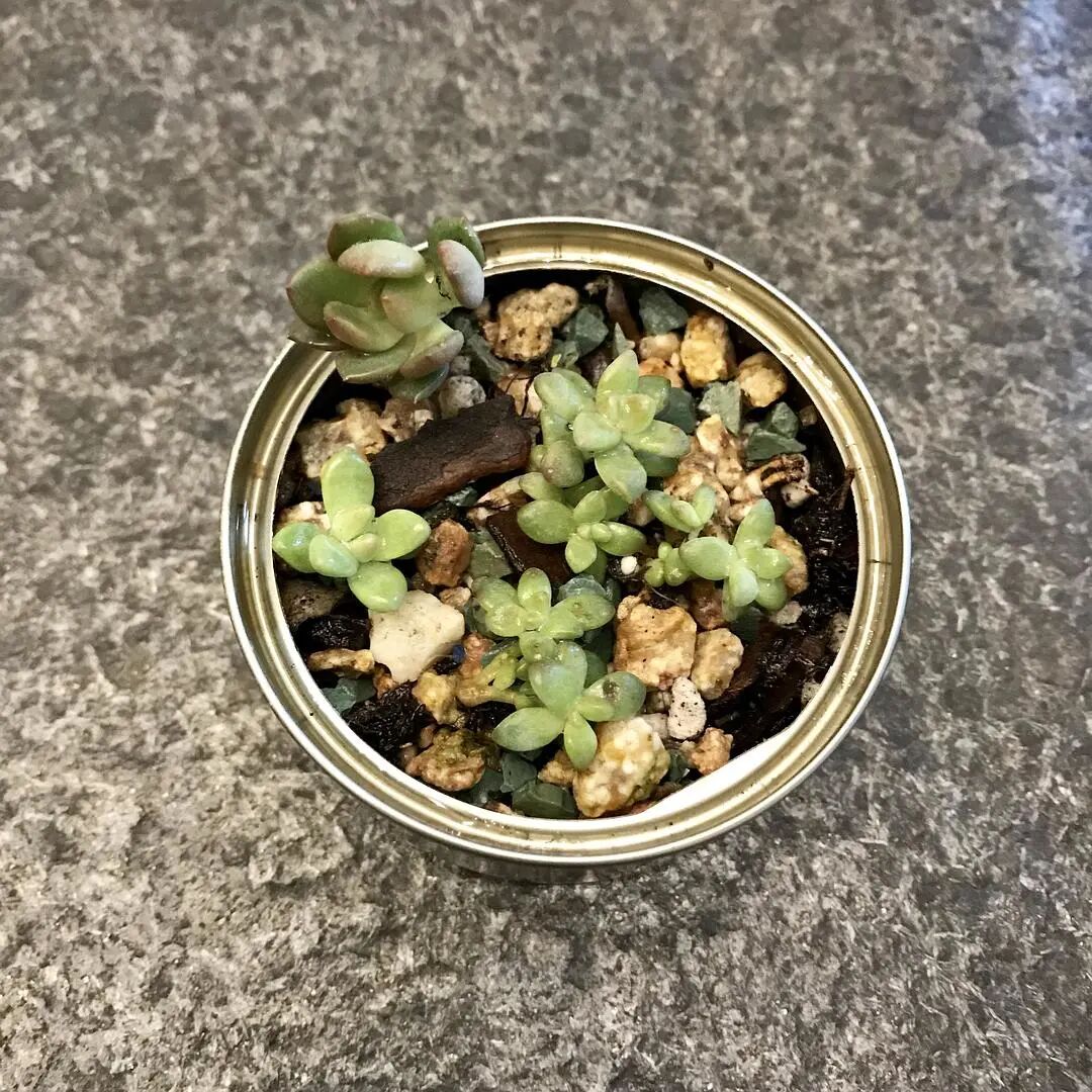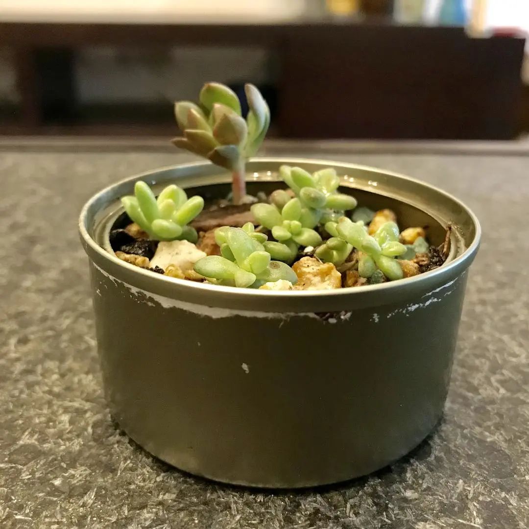 猫咪吃的海洋之星罐头,吃完洗干净,电钻打眼儿,种多肉,小巧可爱