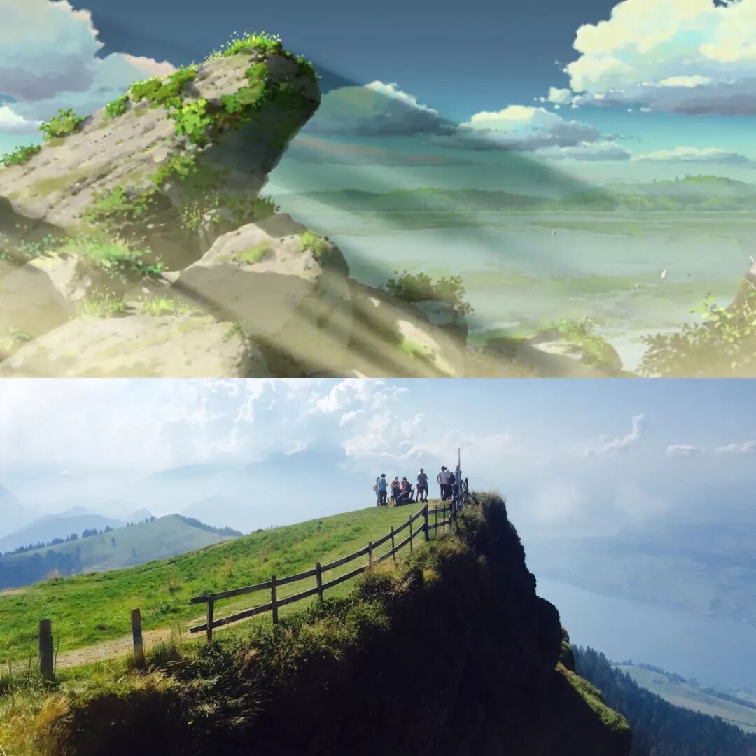 曾经在瑞士瑞吉山随手拍了一些照片,回来整理发现都能在新海诚的动画“云之彼端,约定之所”和“追逐繁星的孩子”里找到对应,不知是现实掉进了漫画,还是漫画溜入了现实。 来自豆瓣话题#你拍过的和某一个电影场景最相像的照片#