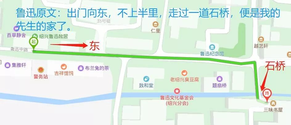 刚刚看了一个微博,po主发了张百度地图截图。原来鲁迅故居距离三味书屋这么近!!!
