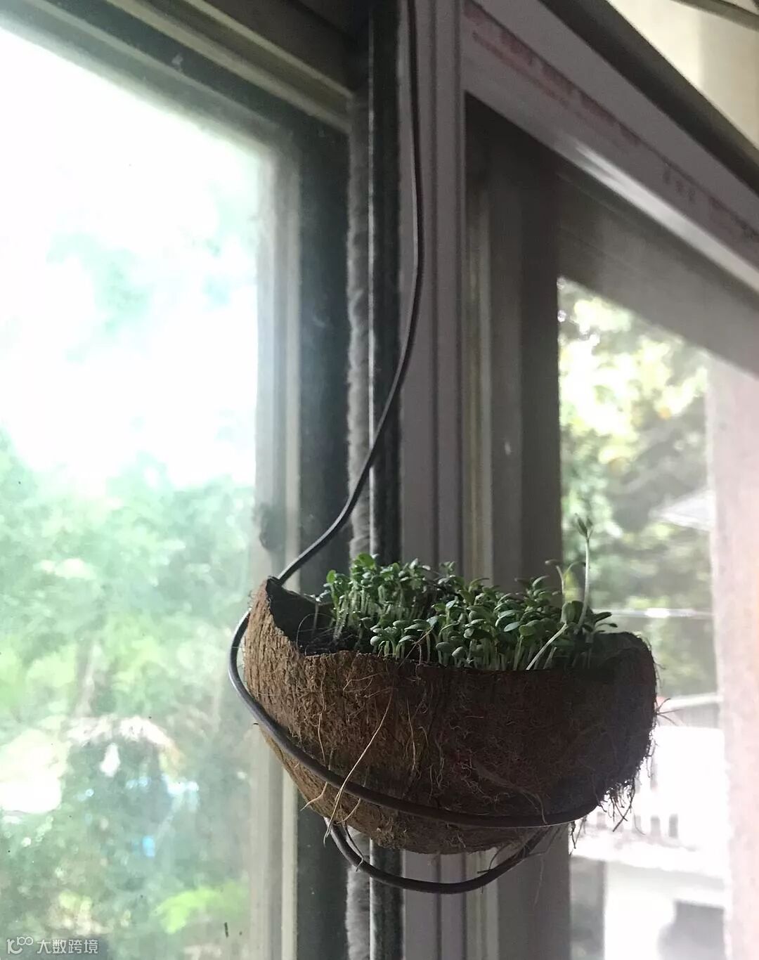 不用的拔罐罐子被我挂在墙上插绿箩了